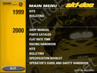 Руководство по ремонту снегоходов Бомбардье SkiDoo, каталог запчастей Bombardier, эксплуатация, 1999-2000. Разделы представленные в книге по ремонту снегоходов Bombardier SkiDoo: SHOP MANUAL PARTS CATALOG FLAT RATE TIME RACING HANDBOOK KITS OPERATOR'S GUIDE SPECIFICATION BOOKLET