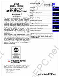 В каталоге Mitsubishi Endeavor 2004 содержится подробное и полное описание ремонта и диагностики всех агрегатов автомобиля, включая подробные электрические схемы, моменты затяжек, процесс сборки и разборки двигателя и других агрегатов и узлов, кузовные размеры для вытяжки кузова, подробный ремонт АКПП и МКП, ремонт сцепления, рулевого управление, кондиционера, всех электрических устройст и блоков управления, необходимый специальный инструмент, а так же другая информация. Только Американский рынок.