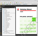 В программе Mitsubishi Pajero Sport, 1998-2004, содержится подробное и полное описание ремонта и диагностики всех агрегатов автомобиля, включая подробные электрические схемы, моменты затяжек, процесс сборки и разборки двигателя и других агрегатов и узлов, кузовные размеры для вытяжки кузова, подробный ремонт АКПП и МКП, ремонт сцепления, рулевого управление, кондиционера, всех электрических устройст и блоков управления, необходимый специальный инструмент, а так же другая информация. Электрические схемы.